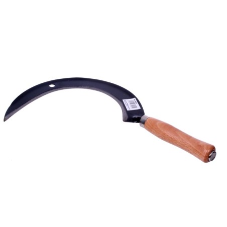 Sierp gładki osadzony na rękojeści wykonanej z drewna. Służy do ścinania roślin i niewielkich gałęzi.