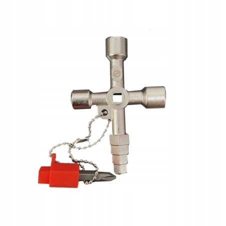 Klucz bezpieczeństwa do zamków i zamknięć technicznych, szaf sterowniczych, szaf rozdzielczych w instalacjach elektrycznych, wodnych i gazowych.