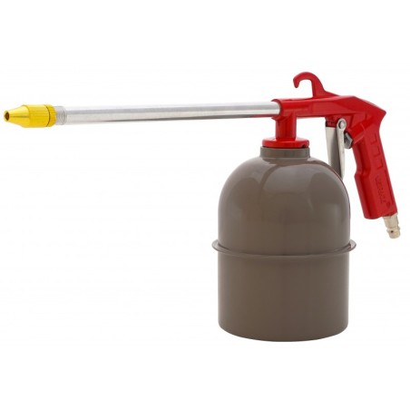 Pistolet do mycia służy do oczyszczania za pomocą strumienia sprężonego powietrza i substancji czyszczącej. Dzięki wyposażeniu w zbiornik oraz długą dyszę, pistolet pozwala na czyszczenie nawet w trudno dostępnych miejscach. Cechy produktu: