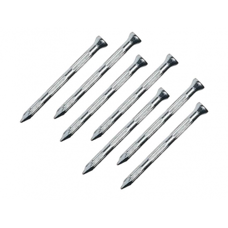 Gwoździe wykonane są ze stali niskowęglowej pokrytej ocynkiem białym. Przeznaczone do drewna litego i klejonego.
