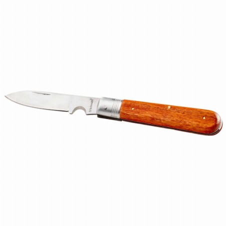 Nóż monterski to wszechstronne narzędzie przeznaczone do wykonywania różnorodnych prac instalacyjnych i warsztatowych. Dzięki solidnej konstrukcji i wysokiej jakości ostrzu doskonale sprawdza się przy obróbce kabli, przewodów oraz podczas montażu instalacji elektrycznych. Ostrze wyposażone w specjalne wgłębienie umożliwia szybkie i precyzyjne zdejmowanie izolacji, co znacznie ułatwia codzienną pracę. Rękojeść noża została zaprojektowana z myślą o komforcie użytkowania, a zastosowane wkładki z drewna nadają narzędziu estetyczny wygląd i zapewniają pewny chwyt.